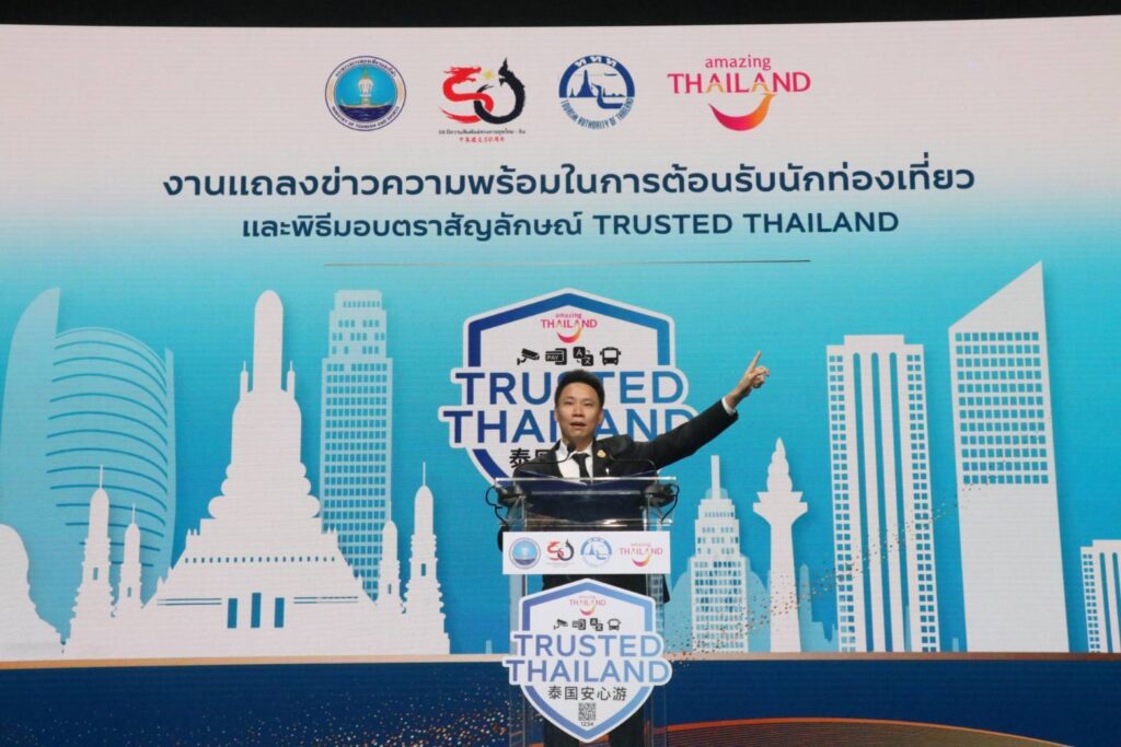 นายอรรถกร ศิริลัทธยากร รัฐมนตรีว่าการกระทรวงการท่องเที่ยวและกีฬา กล่าวว่า ตลอด 10 เดือนที่ผ่านมาของปี 2568 ประเทศไทยต้อนรับนักท่องเที่ยวต่างชาติรวมประมาณ 26.7 ล้านคน สำหรับนักท่องเที่ยวชาวจีนมีจำนวน 3.7 ล้านคน คิดเป็นสัดส่วนประมาณ 15% ดังนั้น รัฐบาลจึงได้ดำเนินมาตรการสร้างความมั่นใจในการเดินทางให้นักท่องเที่ยวอย่างต่อเนื่องในทุกมิติ ไม่ว่าจะเป็นการยกระดับมาตรฐานสถานที่ท่องเที่ยว การประสานความร่วมมือกับหน่วยงานด้านความมั่นคง การสื่อสารข้อมูลที่ถูกต้อง รวมถึงการอำนวยความสะดวกแก่นักท่องเที่ยว ด้วยโครงการ “Trusted Thailand” ที่ดำเนินการโดย ททท. เพื่อเสริมความเชื่อมั่นให้กับนักท่องเที่ยวในการเลือกสถานประกอบการโรงแรมที่พัก ร้านอาหาร และแหล่งท่องเที่ยว ผ่านตราสัญลักษณ์ Trusted Thailand ที่เปรียบเสมือนสัญลักษณ์ที่สร้างความมั่นใจในด้านความปลอดภัยของนักท่องเที่ยวให้กลับมาเดินทางท่องเที่ยวประเทศไทยอีกครั้ง โดยเฉพาะในกลุ่มนักท่องเที่ยวจีนให้เกิดการเดินทางอย่างต่อเนื่อง