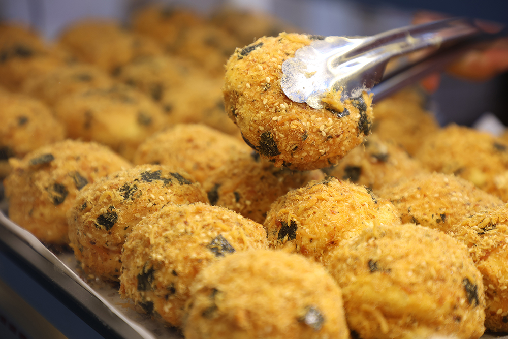 ซ้ง ทาโกะย่าง ฟินสุดไปกับหนวดปลาหมึกยักษ์ย่างเนื้อเด้ง หอมกลิ่นย่างกำลังดี เสิร์ฟคู่กับน้ำจิ้มซีฟู้ดรสแซ่บสูตรเฉพาะ ที่ช่วยชูรสชาติให้โดดเด่นยิ่งขึ้น