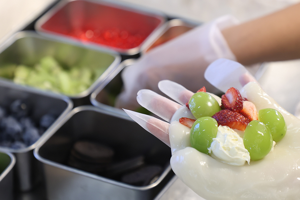 ดอลลี่ โมจิ โมจิแป้งนุ่มหนึบ ไส้ครีมชีสเนียนละมุน หอมมัน เสิร์ฟพร้อมผลไม้สดชิ้นโตเพิ่มความสดชื่น เป็นเมนูที่ทั้งหวานฉ่ำและถ่ายรูปสวยทุกมุม
