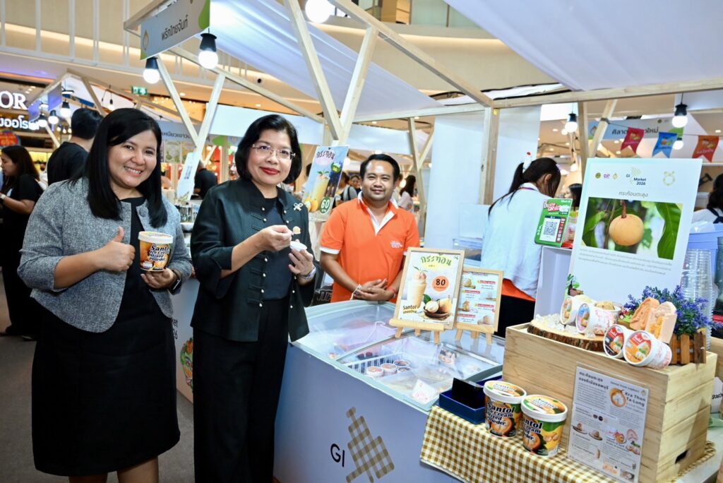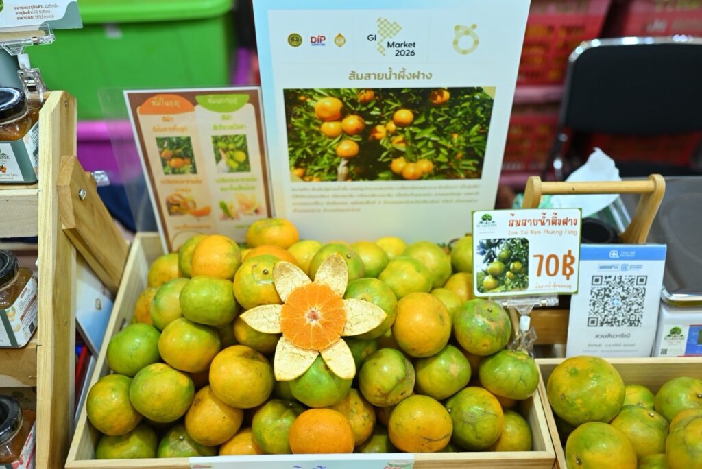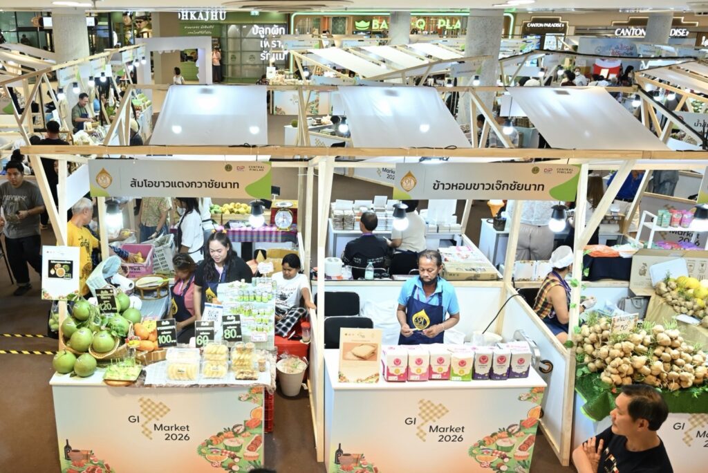 นางอรมน กล่าวว่า งาน GI Market 2026 จัดขึ้นระหว่างวันที่ 23 – 29 มีนาคม 2569 เวลา 10.00 – 22.00 น. ณ ลานโปรโมชั่น ชั้น G ศูนย์การค้าเซ็นทรัล ปิ่นเกล้า ชูแนวคิด “คัดสรรของดีถิ่นไทย มาตรฐาน GI สู่คุณค่าระดับสากล” เพื่อแสดงศักยภาพและตอกย้ำคุณภาพสินค้า GI ไทยในระดับพรีเมียม โดยการจัดงานในปีนี้ กรมฯ ได้รวบรวมสินค้า GI จากทุกภูมิภาคทั่วประเทศมาจำหน่ายภายในงานกว่า 70 ร้านค้า มีสินค้าที่น่าสนใจและเป็นไฮไลท์ของงาน ได้แก่ มะพร้าวน้ำหอมบ้านแพ้ว ของดีเมืองสมุทรสาครที่มีเนื้อมะพร้าวเหนียวนุ่ม รสชาติหอมหวานชื่นใจ และมีกลิ่นหอมคล้ายใบเตย หอยนางรมสุราษฎร์ธานี ส่งตรงจากอ่าวบ้านดอน ตัวใหญ่เนื้อแน่นขาวนวล รับประทานสดรสชาติดีและไม่มีกลิ่นคาว ข้าวเหนียวเขาวงกาฬสินธุ์ ข้าวเหนียวคุณภาพดี มีความอ่อนนุ่ม กลิ่นหอม และมีคุณค่าทางโภชนาการสูง กาแฟเทพเสด็จ กาแฟจากแหล่งปลูกในพื้นที่ป่าอนุรักษ์จังหวัดเชียงใหม่ ที่ปลูกร่วมกับพันธุ์พืชและดอกไม้ป่านานาชนิด ส่งผลให้กาแฟมีรสชาติกลมกล่อม และมีกลิ่นหอมเป็นเอกลักษณ์ นอกจากนี้ ยังมีสินค้า GI อื่นๆ อีกมากมาย อาทิ ข้าวหอมมะลิทุ่งกุลาร้องไห้ (ศรีสะเกษ) ปลากะพงสามน้ำทะเลสาปสงขลา ปลาทูแม่กลอง (สมุทรสงคราม) ทุเรียนหลงลับแลอุตรดิตถ์ มะม่วงขายตึกแปดริ้ว (ฉะเชิงเทรา) มะพร้าวน้ำหอมบางคล้า (ฉะเชิงเทรา) มะยงชิดแม่ย่าสุโขทัย หอมแดงศรีสะเกษ ผ้าหม้อห้อมแพร่ ผ้าย้อมครั่งลำปาง ศิลาดลเชียงใหม่ ชามไก่ลำปาง นิลเมืองกาญจน์ เป็นต้น
