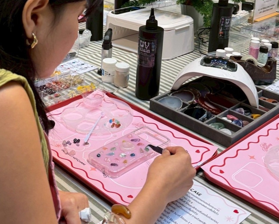 ภายในเวิร์กช็อป ผู้เข้าร่วมจะได้เลือกอัญมณีที่คัดสรรมาอย่างพิถีพิถัน ซึ่งแต่ละชนิดมีความหมายเฉพาะตัว ทั้งด้านความรัก การปกป้อง หรือการเสริมพลังความมั่นใจ ก่อนนำมาจัดวางดีไซน์ในแบบที่สะท้อนตัวตน และปิดผลงานด้วยเรซินใส กลายเป็นเคสโทรศัพท์ชิ้นพิเศษที่มีเพียงหนึ่งเดียว พร้อมพกพาความหมายดี ๆ ไปได้ในทุกวัน