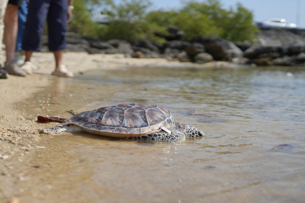 ต่อด้วยกิจกรรมเพื่อการอนุรักษ์ร่วมกันปล่อยเต่ามะเฟือง และปลาฉลามคืนสู่ท้องทะเลอันดามัน สืบสานการดูแลระบบนิเวศน์ให้คงอยู่ต่อไป ซึ่งคุณราตรี สุขสุวรรณ ผู้อำนวยการ ศูนย์วิจัยทรัพยากรชายฝั่งทางทะเลและชายฝั่งอันดามันตอนบน และทีมงาน ให้การต้อนรับและให้ความรู้วงจรชีวิต ของ สัตว์ น้ำในผืนท้องทะเล ได้อย่างเข้าใจ