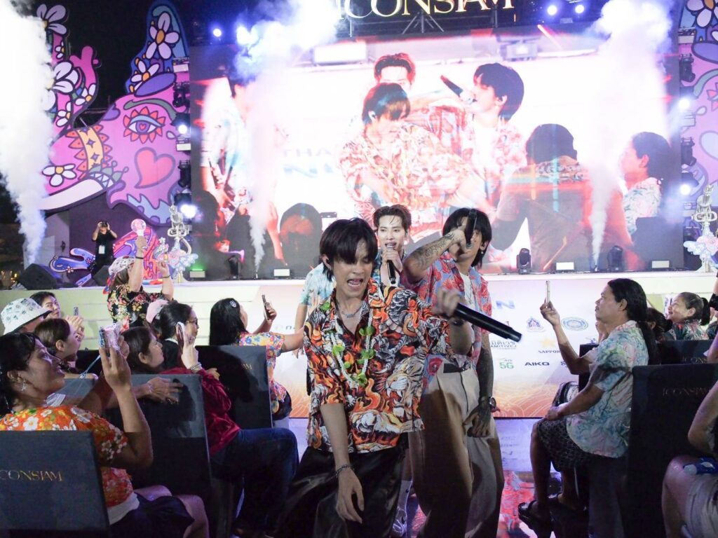 งานนี้ไม่ได้มีแค่สายจิ้นและไอดอล เพราะไอคอนสยามจัดเต็มสาดความสนุกแบบครบรส มอบความสุขสุดเพลินด้วยมินิคอนเสิร์ตจากพระเอกลิเกเงินล้าน ศรราม น้ำเพชร ที่โชว์ลูกคอและร่ายรำได้สมศักดิ์ศรีซุปตาร์สายไทย เรียกเสียงกรี๊ดจากเหล่าแม่ยกที่แห่มาให้กำลังใจภายในงาน ก่อนจะปิดท้ายความจอยด้วยวง New Country ที่ขนเพลงฮิตมาให้แฟน ๆ ได้ม่วนกรุบ โยกตามกันสไตล์ลูกทุ่งสมัยใหม่ เรียกว่าเป็นการฉลองปีใหม่ไทยที่ครบเครื่องทุกมิติอย่างแท้จริง