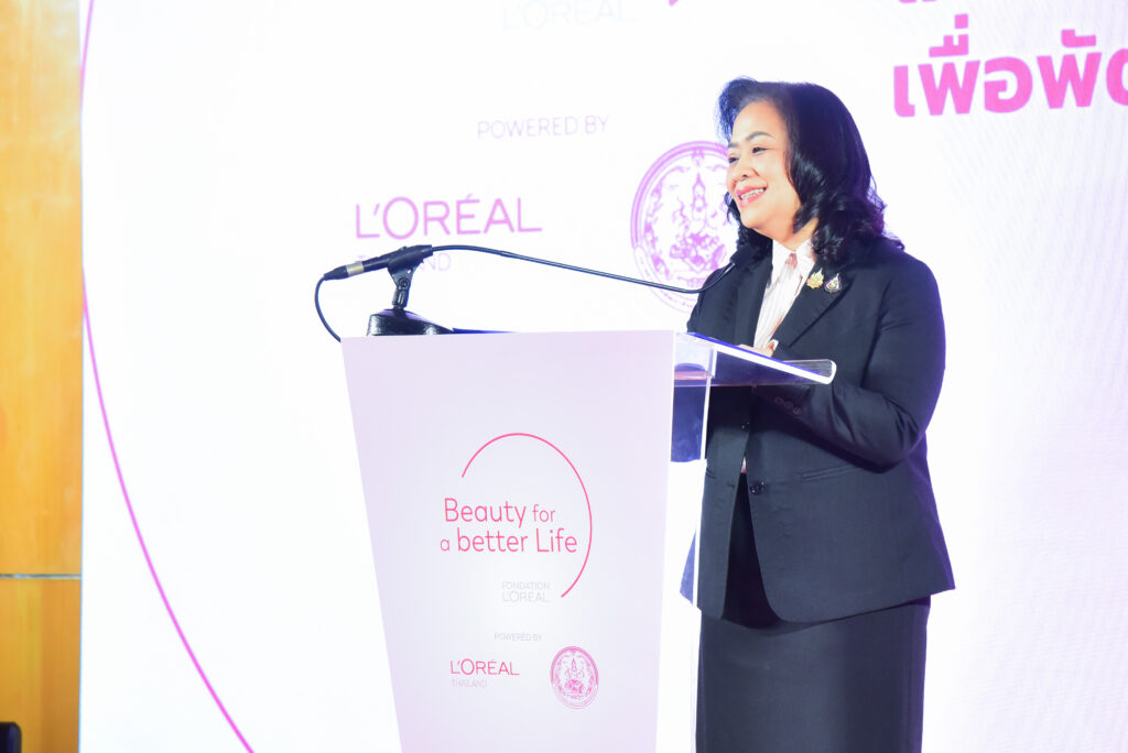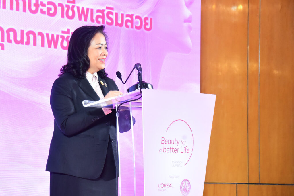 นางจตุพร กล่าวว่า บริษัท ลอรีอัล (ประเทศไทย) จำกัด ได้ให้การสนับสนุนและให้ความร่วมมือกับกรมกิจการสตรีและสถาบันครอบครัว (สค.) อย่างดียิ่งเสมอมา เพื่อขับเคลื่อนงานด้านสังคม ที่มุ่งเน้นการช่วยเหลือกลุ่มเปราะบาง สอดคล้องกับภารกิจของกระทรวง พม. ทั้งในด้านการพัฒนาศักยภาพสตรี ส่งสริมความเสมอภาคและความเท่าเทียม สร้างความเข้มแข็งของสถาบันครอบครัว และช่วยเหลือกลุ่มเป้าหมายที่เป็นผู้ประสบปัญหาทางสังคม โดยมุ่งเน้นการส่งเสริมและพัฒนาอาชีพให้แก่สตรีและกลุ่มครอบครัวเปราะบาง ให้มีโอกาสในการเข้าถึงทรัพยากรเพื่อการประกอบอาชีพตลอดจนสร้างรายได้และสามารถเลี้ยงดูตนเองและครอบครัวให้มีคุณภาพชีวิตที่ดีขึ้น โดย สค. ร่วมกับบริษัท ลอรีอัล (ประเทศไทย) จํากัด ได้ลงนามบันทึกความเข้าใจ (MOU) โครงการฝึกทักษะเสริมสวย เพื่อพัฒนาคุณภาพชีวิต (Beauty for a Better Life) ครั้งแรก เมื่อวันที่ 18 สิงหาคม 2566 ณ โรงแรม ดับเบิ้ลยู กรุงเทพฯ ผ่านการขับเคลื่อนโครงการฝึกทักษะอาชีพเสริมสวย เพื่อพัฒนาคุณภาพชีวิต (Beauty for a Better life) เพื่ออบรมให้แก่กลุ่มเป้าหมายของศูนย์เรียนรู้การพัฒนาสตรีและครอบครัว โดย สค. ได้ดำเนินการจัดหาบุคลากร สถานที่และอุปกรณ์ที่เหมาะสมต่อการฝึกอบรม และจัดฝึกอบรมตามหลักสูตรที่บริษัทลอรีอัลแนะนำ โดยบันทึกความเข้าใจฉบับดังกล่าว จะสิ้นสุดในวันที่ 1 กรกฎาคม 2569